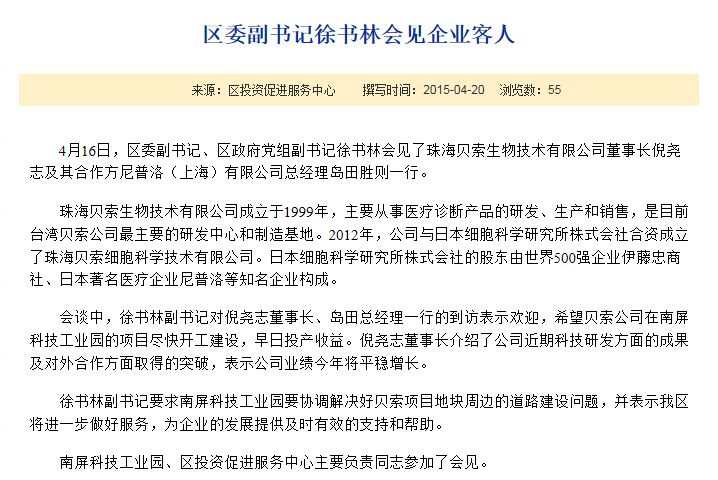 報(bào)道-最新消息-貝索企業(yè):珠海貝索生物技術(shù)有限公司、武漢貝索醫(yī)療器械有限公司、武漢金宏生物科技發(fā)展有限責(zé)任公司、珠海貝索細(xì)胞科學(xué)技術(shù)有限公司、江蘇貝索生物工程有限公司