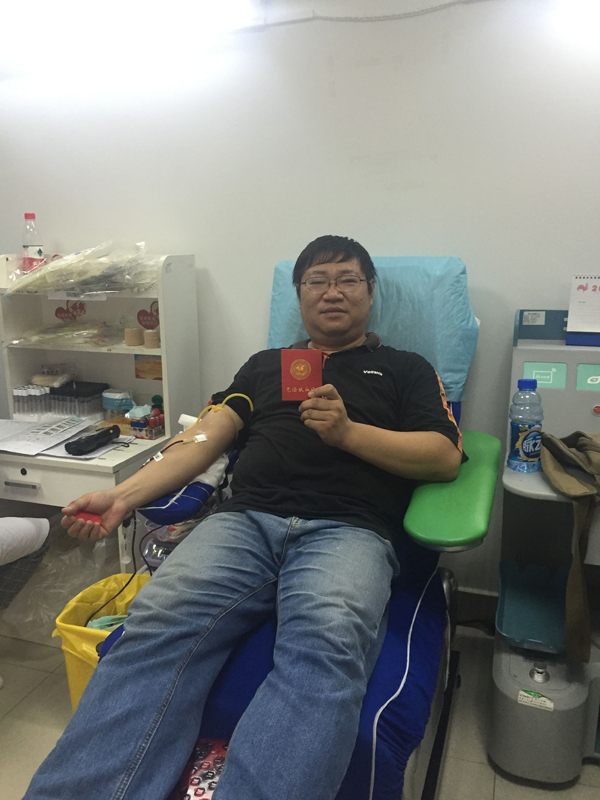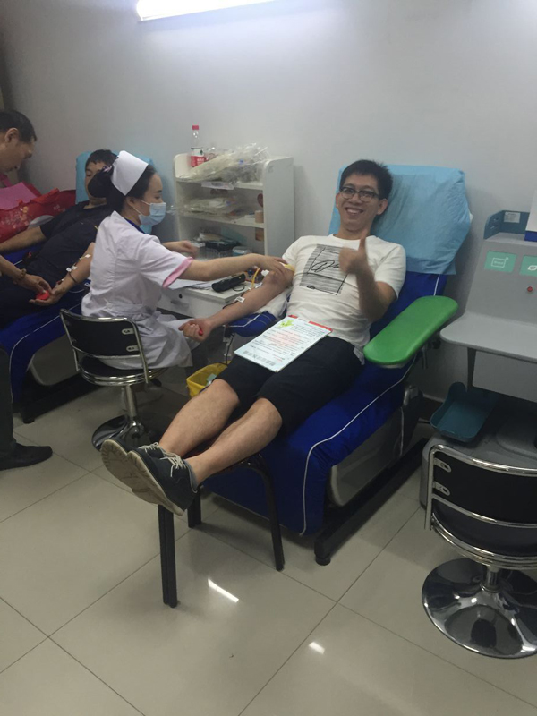 活動進行的兩個小時,最終有16名員工通過體檢,光榮獻血,其中8人捐獻血液400毫升,6人捐獻血液300毫升,2人捐獻血液200毫升,捐獻血液共計27個單位,5400毫升。特別值得表揚的是,來自財務部的李婭是16位中唯一的女性,盡管身材嬌小,而且是第一次參加獻血,表現(xiàn)得特別勇敢,主動要求獻血300ml。來自工程部的李成林和銷售部的文斌作為無償獻血的常客,都是5次奉獻了愛心。