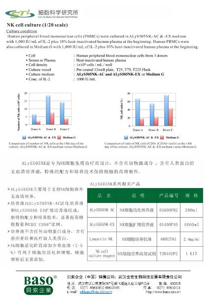 【產(chǎn)品概述】ALyS505NK-AC/EX 無(wú)血清細(xì)胞培養(yǎng)基是專為細(xì)胞免疫治療研究而開發(fā),培養(yǎng)基以改良的IMDM 為基礎(chǔ),含有重組胰島素、轉(zhuǎn)鐵蛋白、白蛋白等營(yíng)養(yǎng)物質(zhì),添加蛋白均為基因重組或者人類醫(yī)療級(jí)蛋白,培養(yǎng)基不含有任何動(dòng)物蛋白成分,表現(xiàn)出對(duì)人類外周單個(gè)核細(xì)胞高增殖性,更有利于NK 細(xì)胞活化及擴(kuò)增的無(wú)血清細(xì)胞培養(yǎng)基。