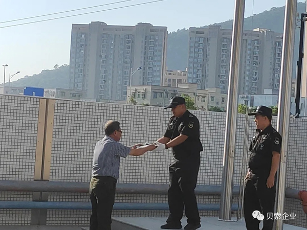 2020年11月7日8時(shí)20分,貝索生物全體員工在位于珠海市南屏國(guó)家級(jí)高新科技園的貝索工業(yè)園舉行了入園升旗儀式,鮮艷的五星紅旗在雄壯的國(guó)歌聲中冉冉升起,隨后,分別代表著貝索企業(yè)和珠海貝索生物的旗幟也升上旗桿伴隨著國(guó)旗迎風(fēng)飄揚(yáng),標(biāo)志著貝索人翹首以盼的貝索工業(yè)園開始啟用;